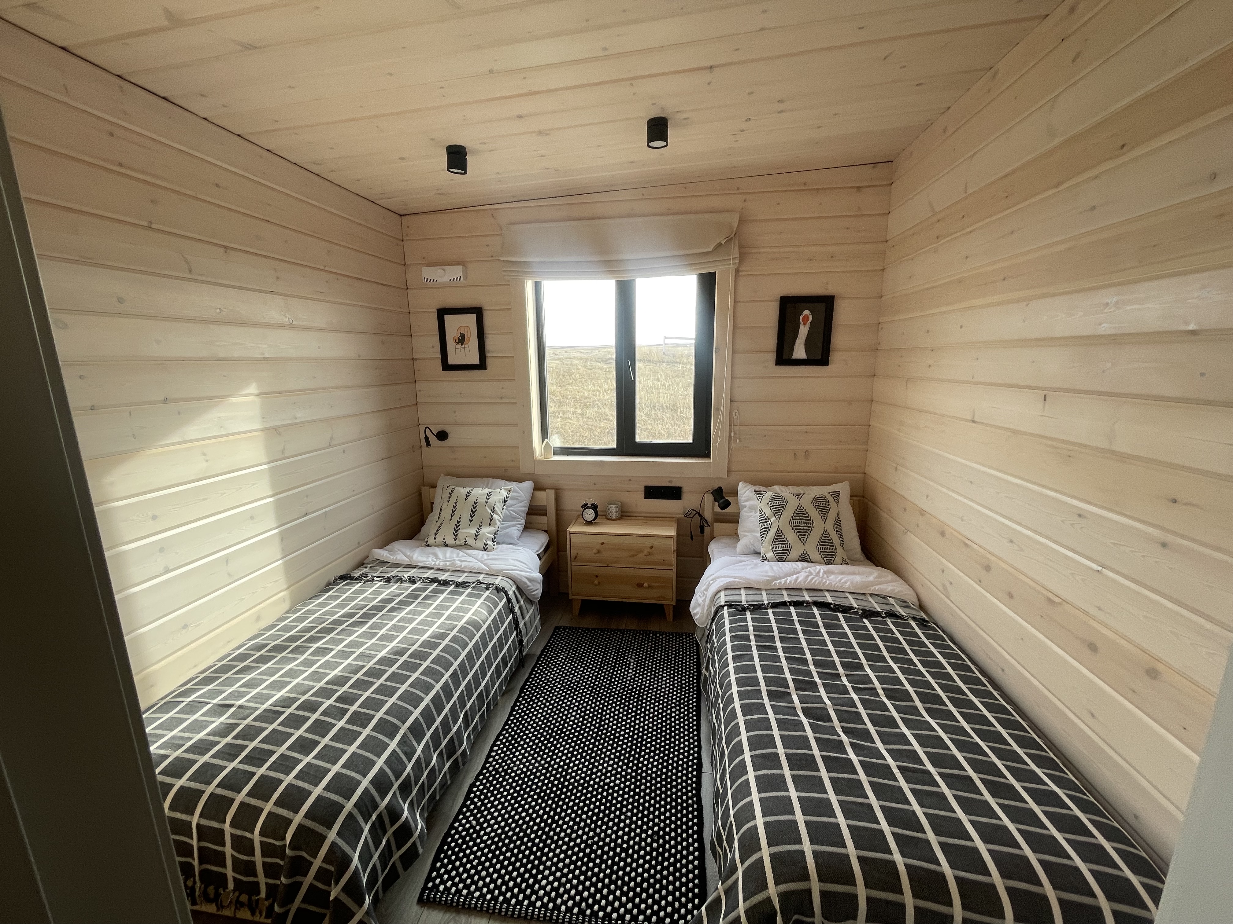 В доме 2 спальни, оборудованные спальными местами - двуспальной и односпальными кроватями.