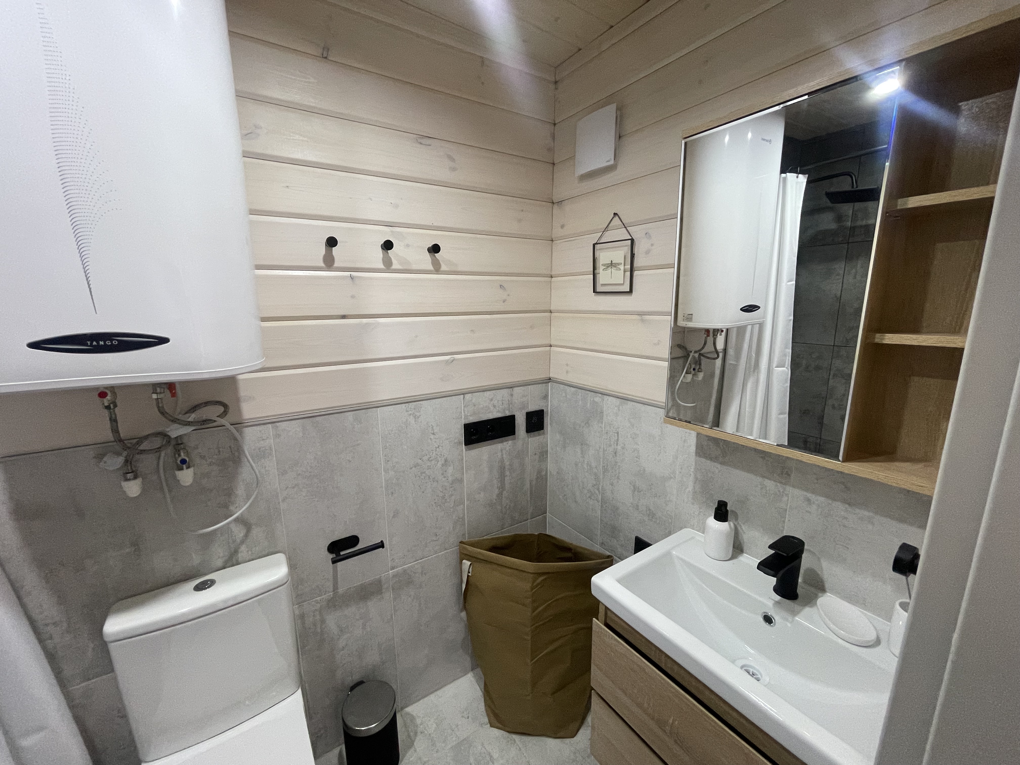 Домик относится к категории повышенной комфортности. Внутри оборудован санузел: туалет и горячий душ.