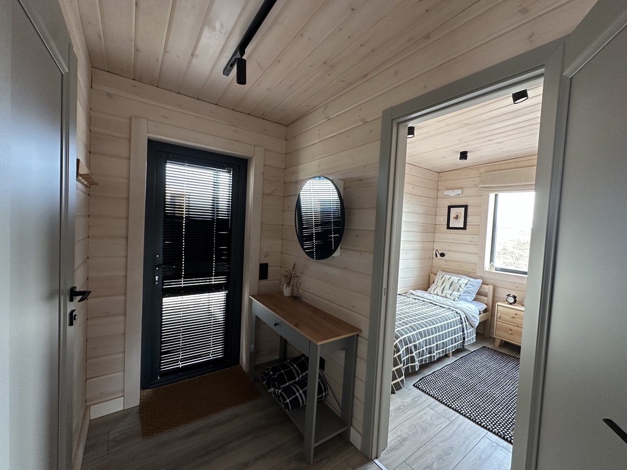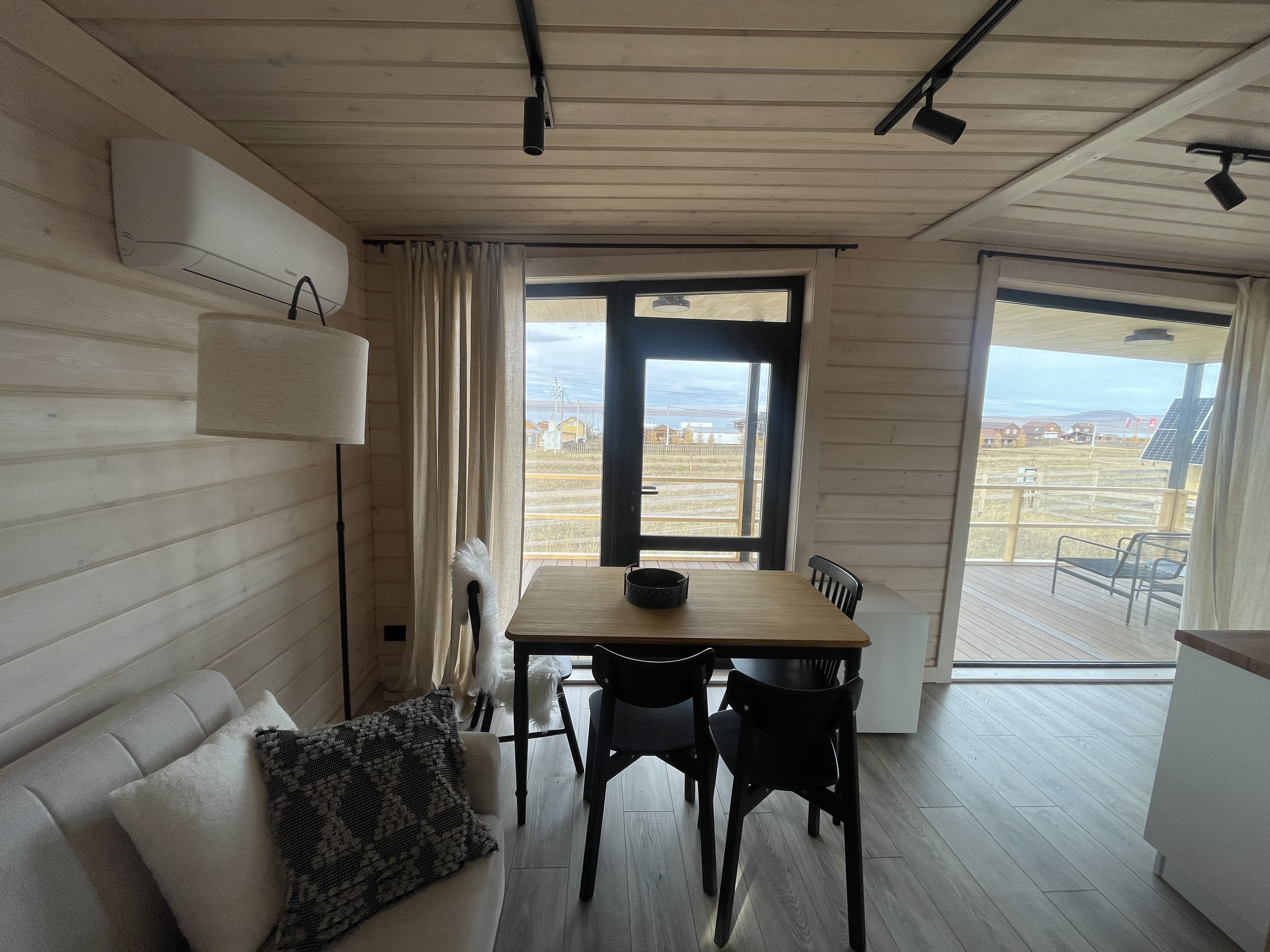 Дом oдноэтажный с панорамными окнами. Утеплён, оборудован электрическим отоплением. Внутри выполнен дизайнерский ремонт.
